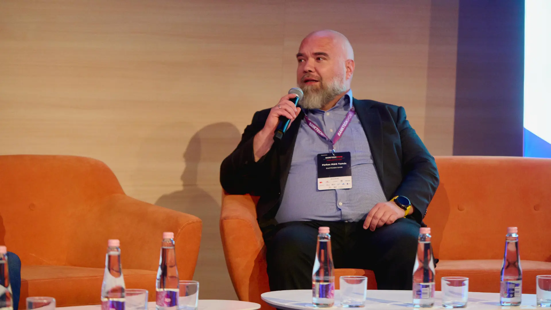 Fotón: Farkas Márk Tamás, a Raiffeisen Bank digitális csatornák vezetője a BankTechShow-n | Kép forrása: FinTech Group (készítette: Kovács Dávid)