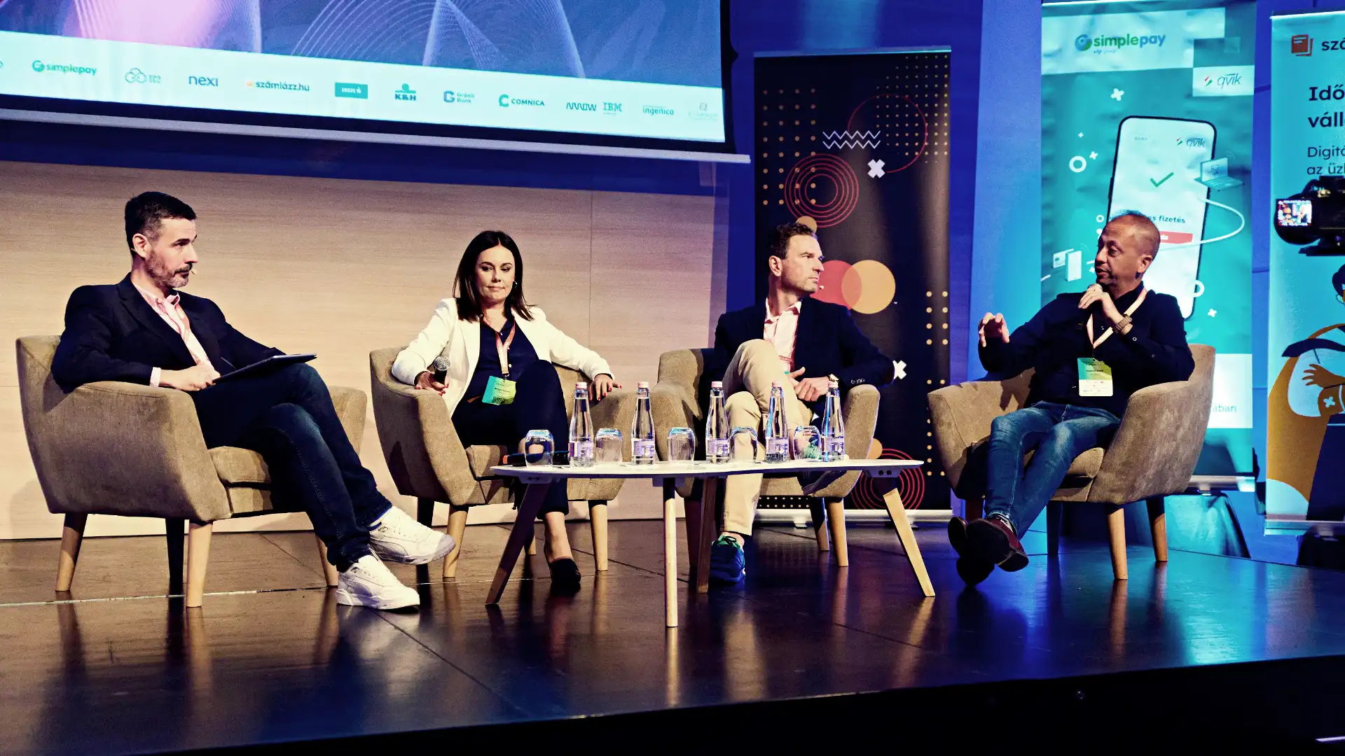 Fotón balról jobbra: Lemák Gábor (FinTech Group, társalapító), Szögi Ágnes (OTP Bank, Senior Chapter Lead, Daily banking), Bek-Balla László (Erste Bank, Digitális Csatornák és Contact Center vezető), Vadócz Zsolt (K&H Bank, Head of Innovation Directorate). Fotót készítette: Kovács Dávid