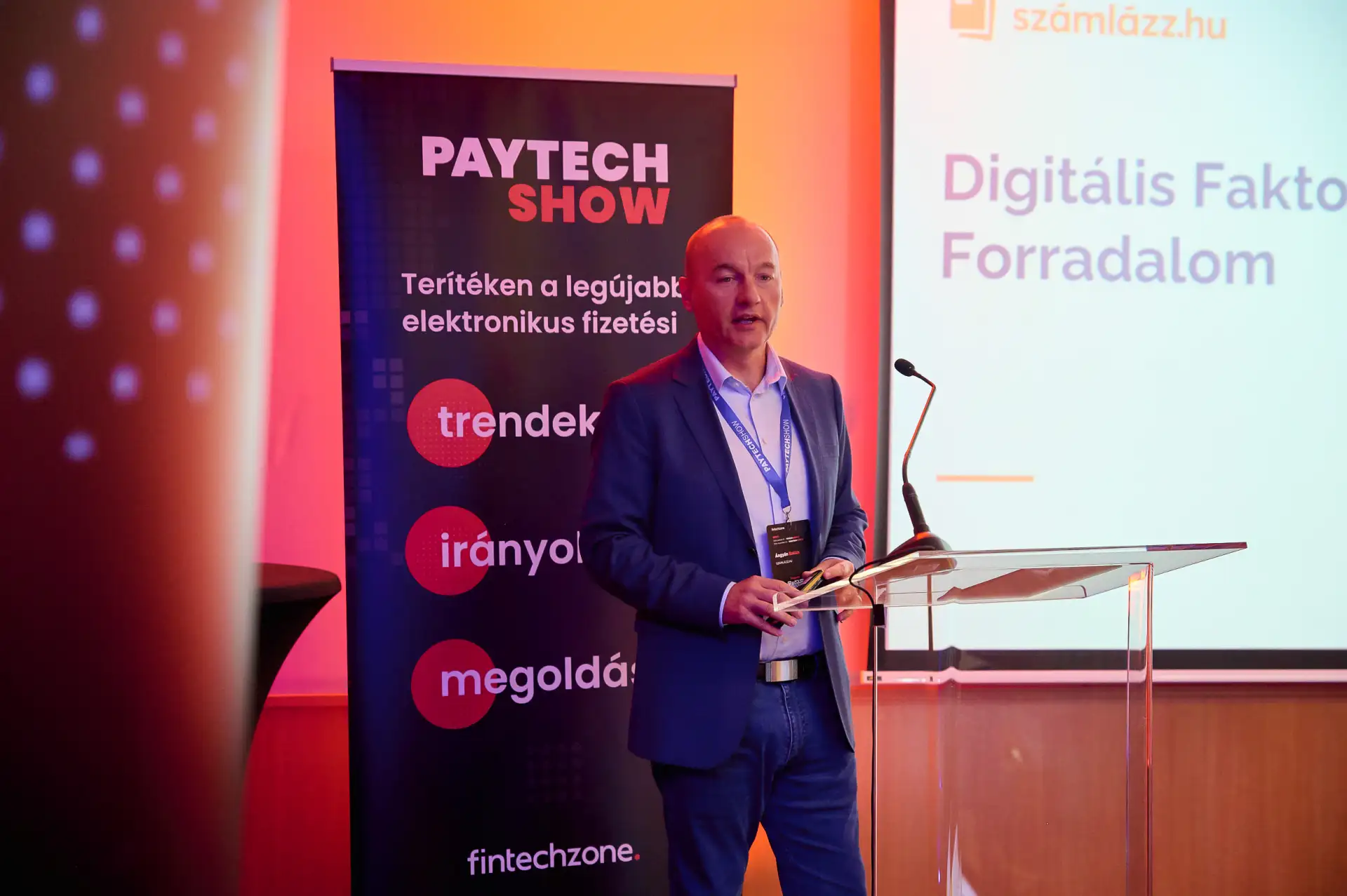 Címlapfotón: Ángyán Balázs a Számlázz.hu ügyvezetője 2024. április 16-án a PayTechShow-n (forrás: FinTech Group, készítette: Kovács Dávid)